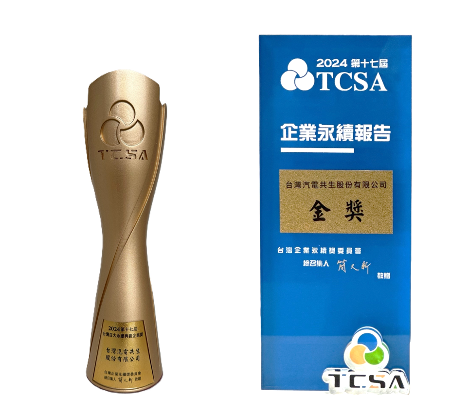2024 TCSA台灣企業永續獎」於12月11日假台北漢來大飯店舉辦頒獎典禮,台汽電榮獲「台灣百大永續典範企業獎」及「企業永續報告–金獎」。本屆台灣企業永續獎(TCSA)共有622家企業、大學、醫院、政府機關和非政府組織(NGO)報名參加,推動永續發展遂成為各界關注議題。台汽電將持續落實ESG各面向均衡發展,強化資訊揭露與利害關係人溝通,確保企業永續經營。相關新聞:2024 第17屆台灣企業永續獎<榜單揭曉>